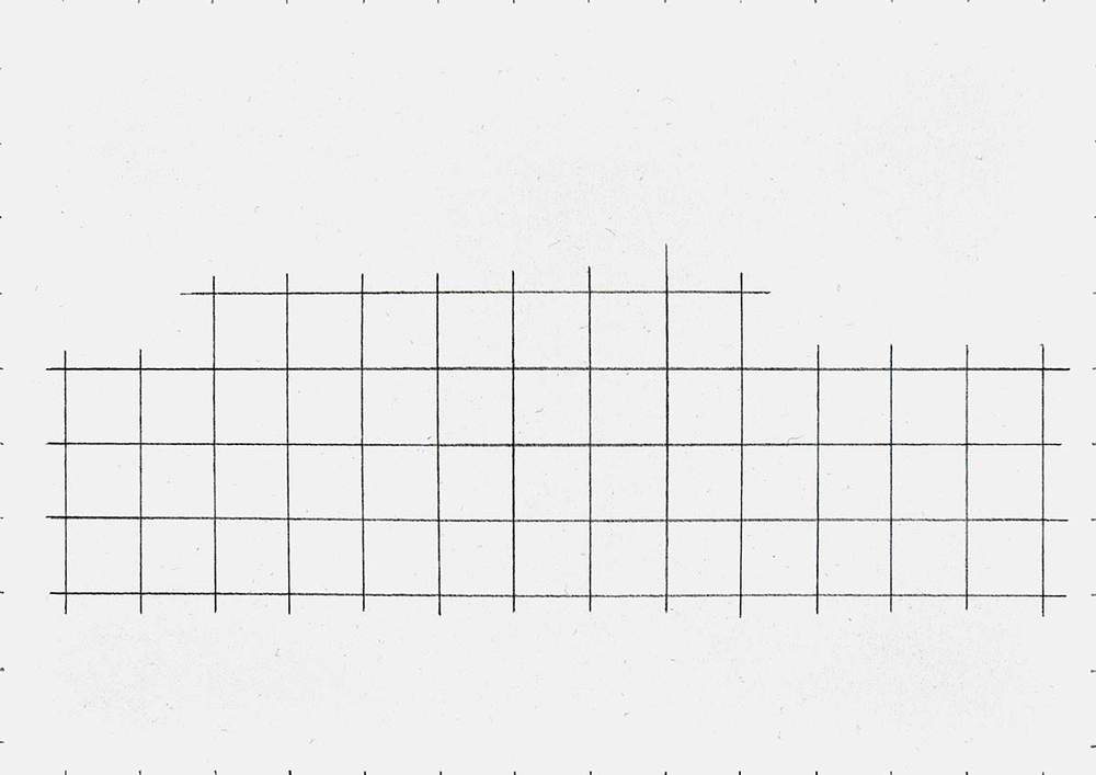I begin by marking the paper’s margins every two centimeters, taking care to note that the squares on the right border are just under two centimeters since I rounded them up, and that the squares on the bottom edge are only roughly one centimeter high.