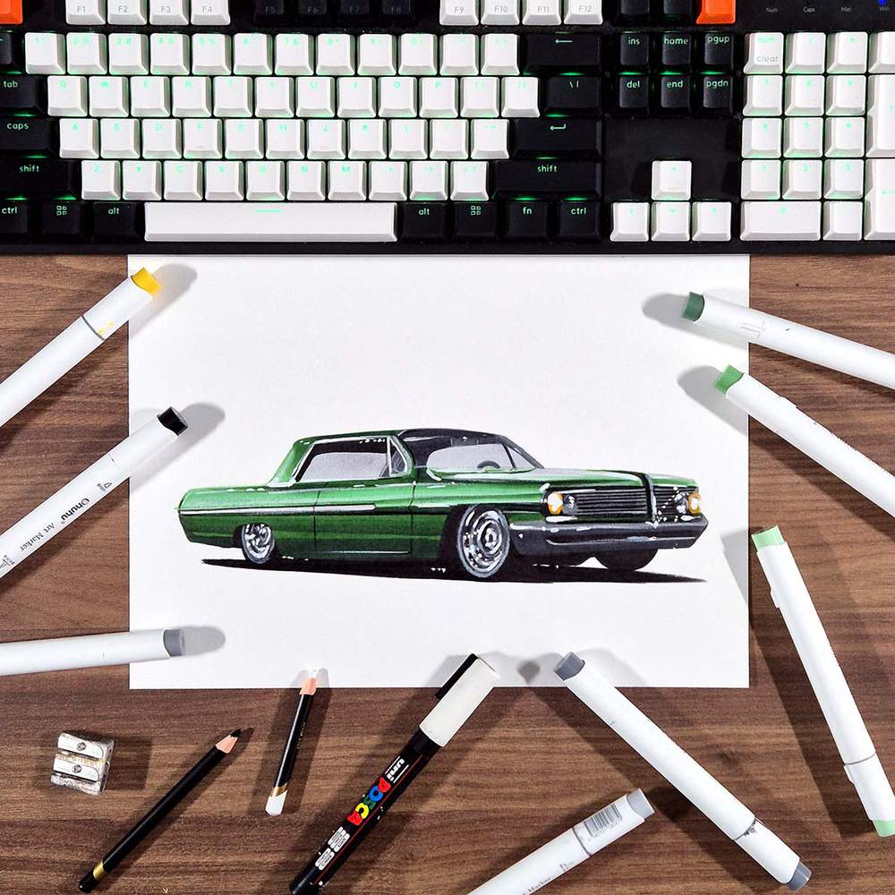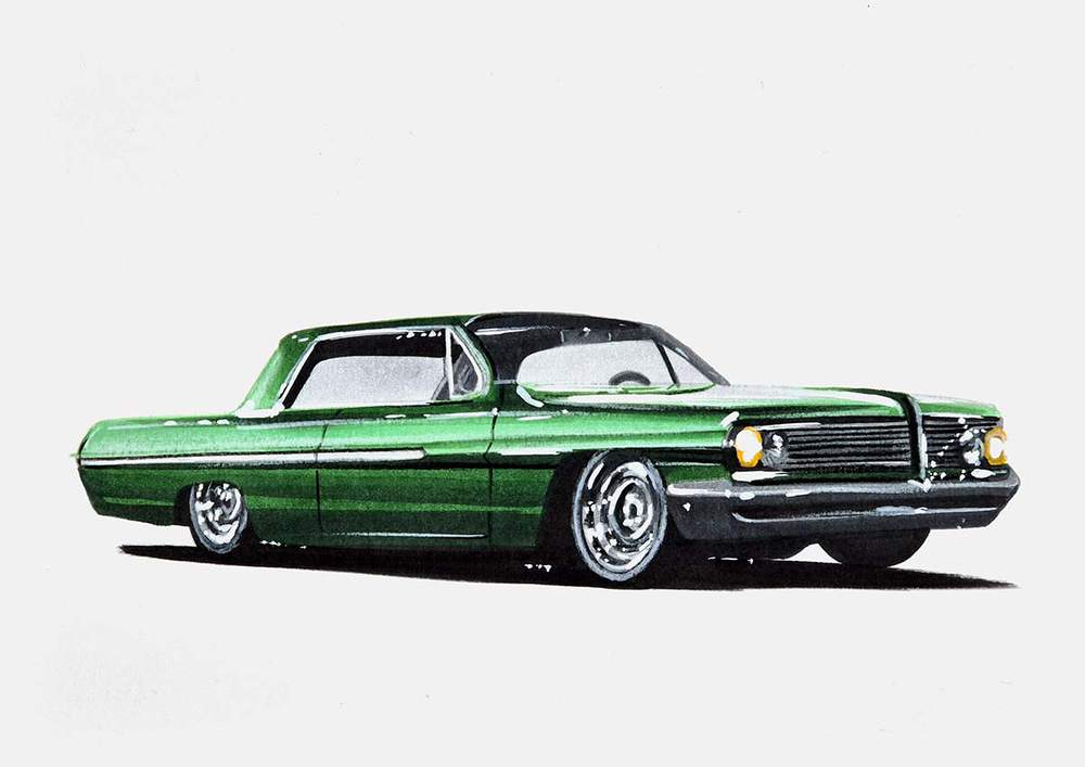I enjoy browsing Unsplash, and I came across this picture of a green lowrider there that I will be utilizing as a guide for this vehicle sketching lesson.