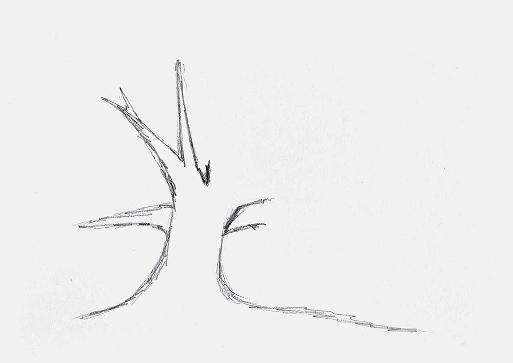 Two lines that curved upward toward one another were drawn by me. The trunk is based on these two lines.