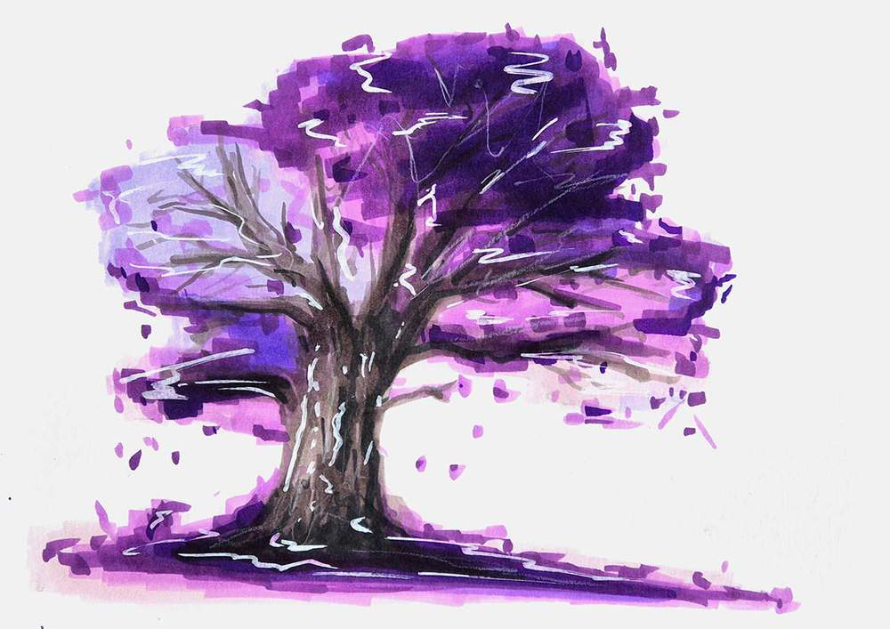I’ll walk you through the entire drawing process and the tools I used in this lesson so you can create this enchanted purple tree as well.